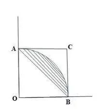证明:我们现在考虑实数对(x,y),因为x和y均小于1,故在XOY平面上,点对(x,y)是落在如图1所示的的单位正方形OACB里面的。