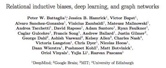 今年6月,由DeepMind、谷歌大脑、MIT 和爱丁堡大学等公司和机构的27 位科学家共同发表了一篇论文Relational inductive biases, deep learning, and graph networks,提出了图网络(graph network)的概念。“让深度学习也能因果推理”,这篇论文引起了业内的大量关注。
