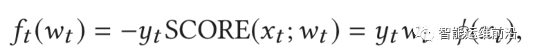 线性损失是关于wt的线性函数,显然也是凸函数。Score 是归一化之后的,显然,如果反馈的yt =1,那么ft(wt)  <0,损失函数的值会减少,反之,yt =-1,那么yt(wt)  >0,损失函数的值会增加,和前面我们的期望是一致的。