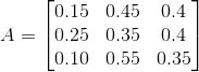 很幸运的,这么复杂的概率转移图,竟然能用简单的矩阵表达, 其中a_{ij}代表的是从i状态到j状态发生的概率: