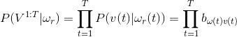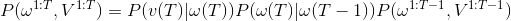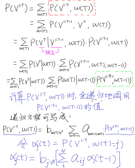 然后又可以使用估计(4.1)中的前向推导法,计算出最大的P(w(1:T), V(1:T)).