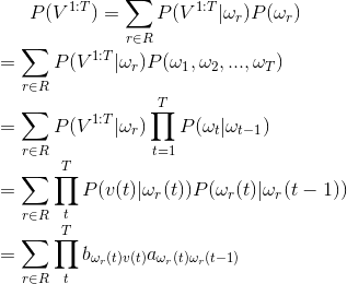 用数学公式表示就是, (V是Visible可见序列, w是隐性状态序列, A,B是HMM状态转移概率矩阵)